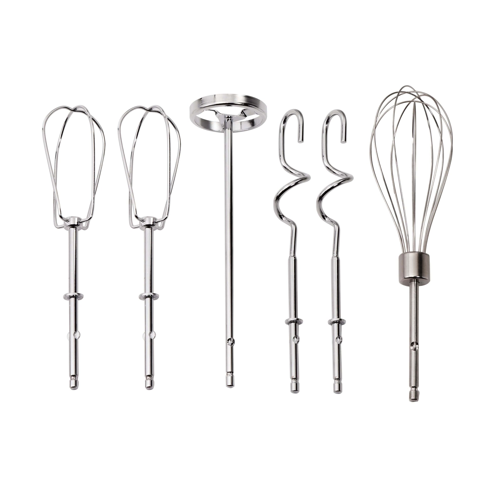 Incluye varios accesorios, como batidores para batidos y ganchos para amasar.