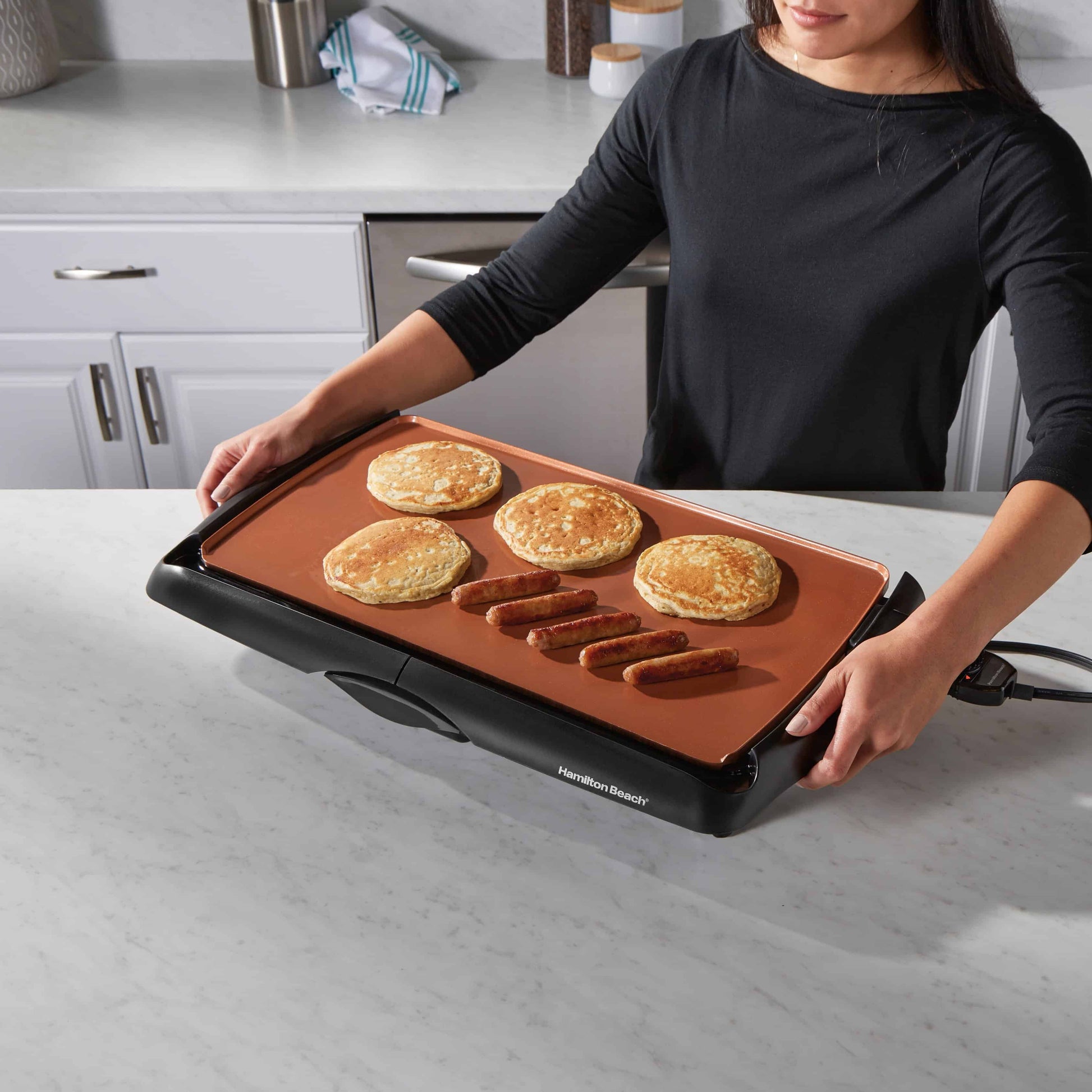 Con su amplia superficie de cocción de 200 pulgadas cuadradas y control de temperatura ajustable, esta plancha es tu aliada para cualquier receta: desde huevos perfectos hasta filetes jugosos. ¡Tú controlas el fuego! 🔥